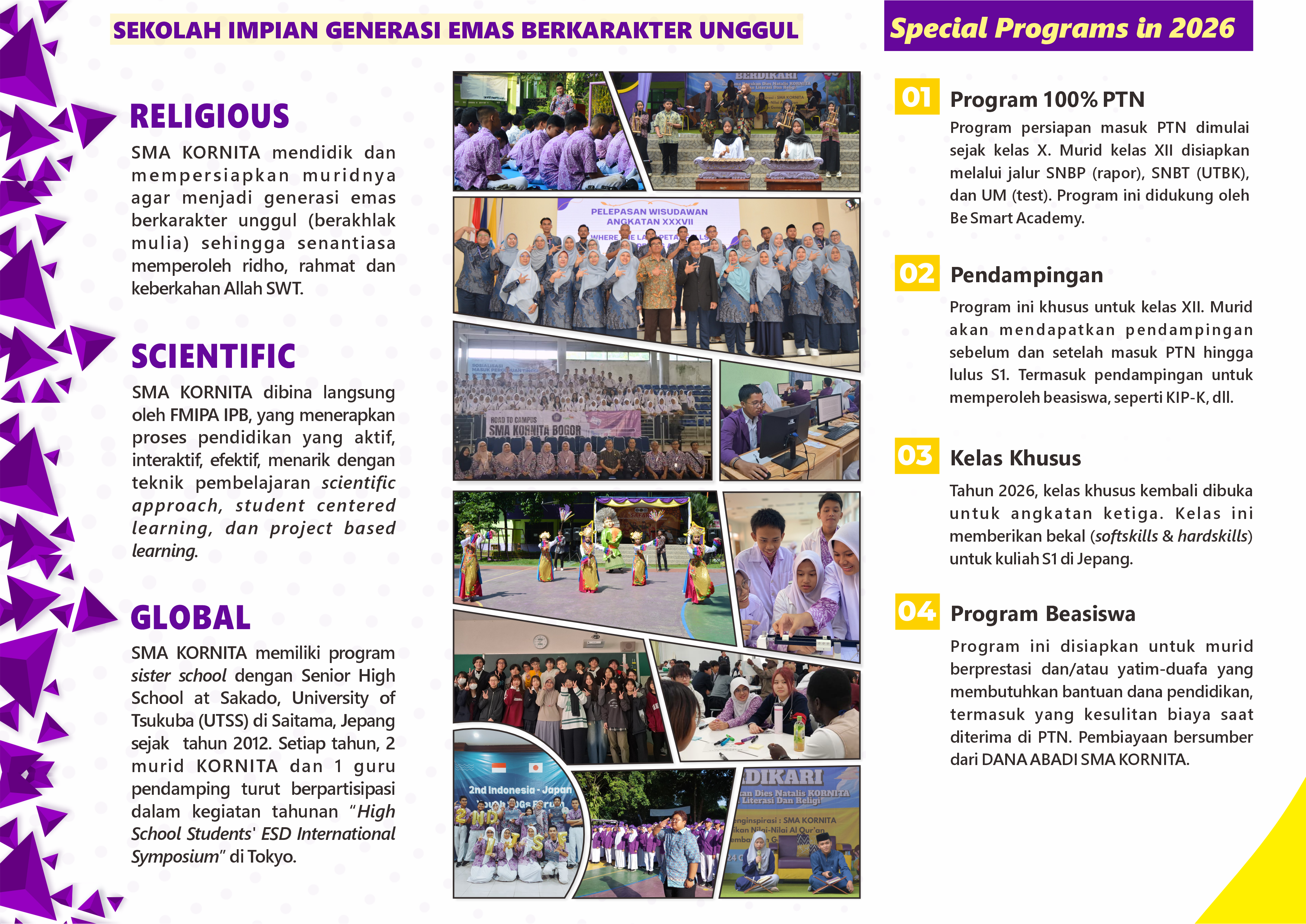 Kornita is already 38 years old. It has graduated thousands of alumni. Most of them continued to S1, even continued to S2 and S3. Some continue their studies in Japan.